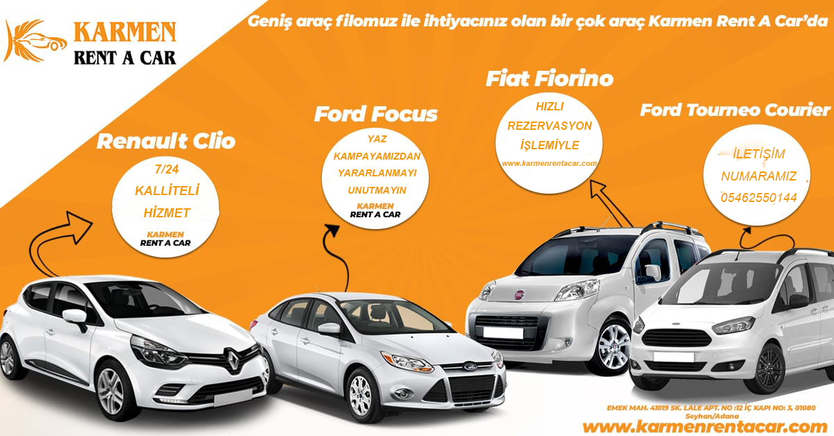 Karmen Rent A Car olarak güncel araç fiyatlarımızı iletişime geçerek öğrenebilirsiniz.